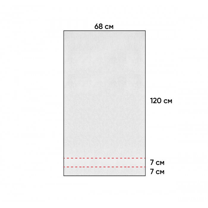 Полотенце 100% хлопок, плотность 440 г/м2, размер 120 x 68 см. Индивидуальная упаковка - полиэтиленовый пакет. Двойная лента на изгибе, функциональная петля. По одному краю полотенца есть гладкий бордюр для нанесения логотипа. Рекомендуемая температура стирки 40 градусов.
