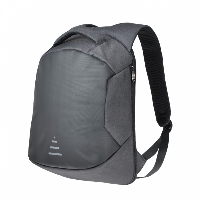 Рюкзак для ноутбука 15,6''. Має велике відділення, з фіксаторами та розділювачами для ноутбука та планшету; 3 додаткові кишені, кишеня для повербанку та 3 зовнішні кишені. Вбудований USB-порт для зарядки. М'яка спинка, лямки з пасивною системою вентиляції; пасок для фіксації на дорожні валізи.
