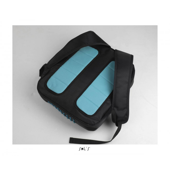 Рюкзак для ноутбука из полиэстера 1680d SOL’S TRADER. Вместительное центральное отделение для ноутбука; внутренняя часть на подкладке с двумя карманами и ремнями-фиксаторами с застежкой-липучкой, большой внешний карман с клапаном и двумя отделениями; 2 передних накладных кармана на молнии; задний накладной карман.