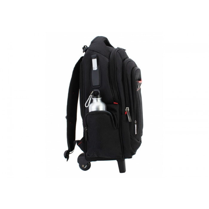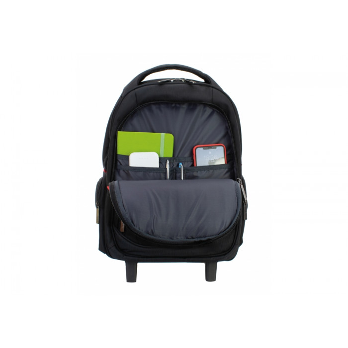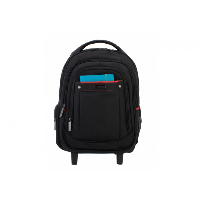 Жорстка анатомічна спинка з PE вставкою по висоті для комфортного використання рюкзака з висувною телескопічною ручкою. Два надійних колеса; ергономічні S-образні лямки можна заховати в кишеню на спинці, щоб не заважали котити рюкзак по підлозі; бокові кишені на блискавках; Laptop-кишеню; міцна ручка; матеріал: поліестер; 3 відділення; металева фурнітура. Гарантія на виробничий брак 60 днів.