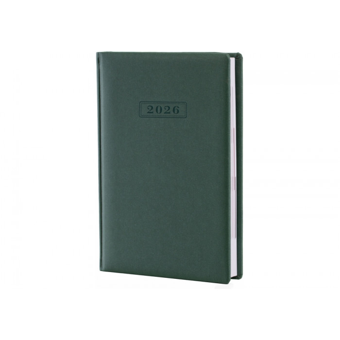 Кольори друку – бордо та темно-сірий, форзац – повно кольорові мапи України та Європи, відривний куточок, перфорація по колу, закладка – шовкова стрічка бордового кольору, на полях сторінок – регістри із зазначенням поточного місяця.