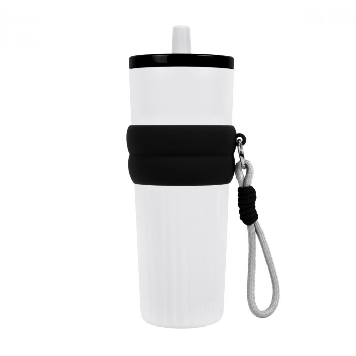 Силиконовое кольцо с текстильной веревкой на карабине. Дополнительный аксессуар для термочашки арт. 2530. Длина веревки с карабином 16 см.