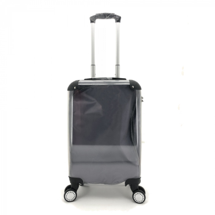 Чемодан - ручная кладь с возможностью создания индивидуального дизайна. Размеры:21х50х34 см. Материал: передняя сторона - прозрачный поликарбонат, задняя - ABS пластик серебристого цвета. Выдвигающаяся ручка в цвете задней части. Застежка - молния. Двойные колеса, позволяющие вращать чемодан на 360 градусов. Замок ТSA без USB, без кармана. Индивидуальная картонная упаковка.