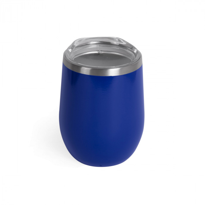 Металева термочашка з подвійними стійками з нержавіючої сталі ( глянцеве покриття емаль) і пластиковою прозорою кришкою з отвором. Кришку можна мити в посудомийній машині. Корпус мити тільки вручну, щоб не пошкодити кольорове покриття. Підтримує температуру протягом 6-ти годин