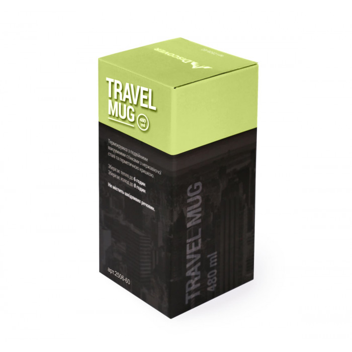 Термокружка з нержавіючої сталі, вкрита матовою кольоровою емаллю, кришка-непроливайка. Підтримує температуру до шести годин.