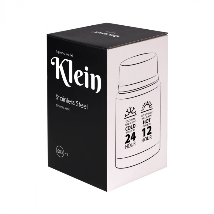 Термос для їжі з високоякісної харчової нержавіючої сталі 304, має подвійну вакуумну стінку. Зберігає холод до 24 години, тепло до 12 годин, ємність 0,5 літра. В комплекті зручна складна сталева ложка та кришка, яка може послужити за миску.