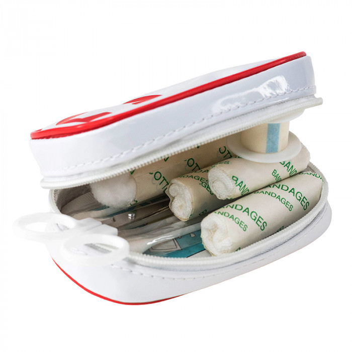 Легкая, компактная аптечка. Содержит: небольшие ножницы, бинт, вату, ватные палочки, пять пластырей, влажные салфетки и моток лейкопластыря. Положите аптечку в свой рюкзак или сумку и вы сможете оказать помощь себе или другим людям, когда она понадобиться.