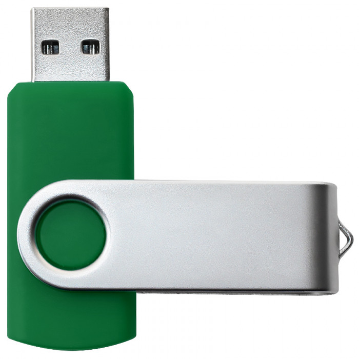 USB флеш-накопитель Twister зеленого цвета – пионер в мире сувенирных флешек. История этой модели начинается в далеком 2005 году. Эти USB флешки воплотили в своем корпусе удобство и практичность в использовании, что позволило им оставаться бессменным лидером на протяжении десятилетия. Имеющаяся поворотная скоба позволяет не только присоединить флешку к связке ключей и надежно защитить USB разъем, но и предоставляет возможность нанести на эту площадь корпоративный логотип, делая этот маленький и незаменимый гаджет очень креативным рекламоносителем и сувениром. Корпус флешки представляет собой комбинацию двух самых распространенных материалов: пластика и металла. При этом мы предоставляем возможность выбора цвета металлической скобы. Стандартный цвет металлической скобы выполненный в серебристом цвете. Опционально Вы можете остановить свой выбор на скобе черного, красного, синего, зеленого или золотистого цвета.