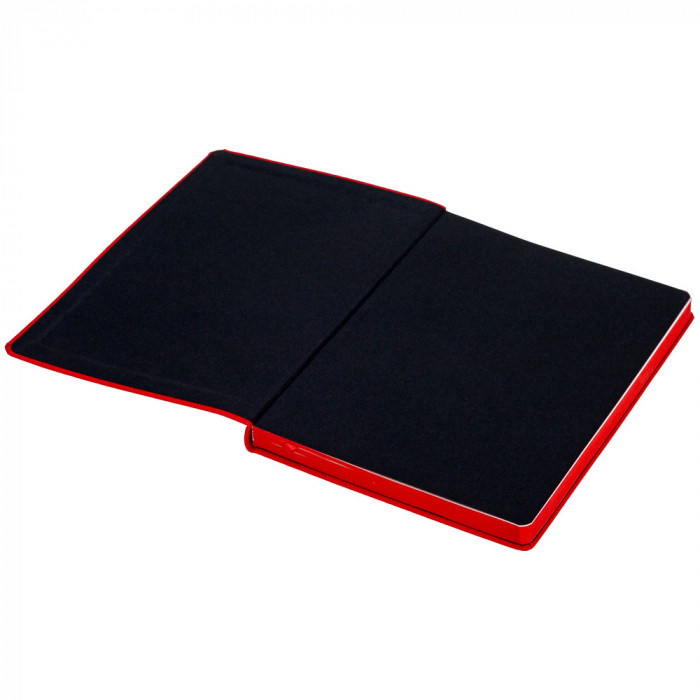 Записная книжка с блоком цвета слоновой кости в линейку и цветным срезом блока в цвет обложки. Блок с нумерацией страниц. Дополнительно имеются 20 страниц в точку, 20 страниц в клетку, 9 страниц для систематизации проектов, а также 8 листов без разметки с перфорацией. Бумага сертифицирована FSC. Гибкая обложка. Матовая обложка со скругленными углами и ляссе в тон обложки. Форзацы из черной дизайнерской бумаги 140 г/м². Кол-во страниц: 256. Плотность бумаги: 70 г/м²