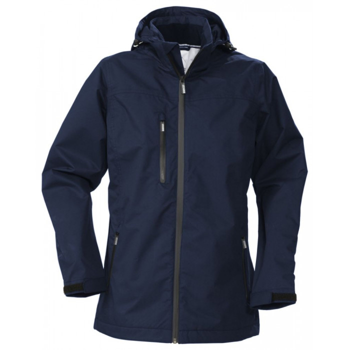 Женская куртка с проклеенными швами и прорезиненными замками. Карман на груди. Замки в съемном капюшоне позволяют вышивать лого или эмблемы. Гибкие шнурки по бокам. • 1% полиэстер WP 5/MVP5, проклеенные швы
