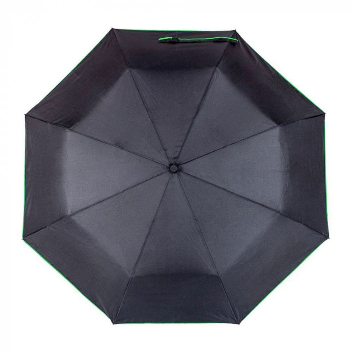 Купол зонта изготовлен из водонепроницаемой ткани эпонж 190Т. Эпонж обладает высокими водоотталкивающими свойствами, вода собирается в капли и стекает, оставляя поверхность практически сухой. Купол декорирован яркой цветной каймой серого цвета со световозвращателем. Вес – 385 г.