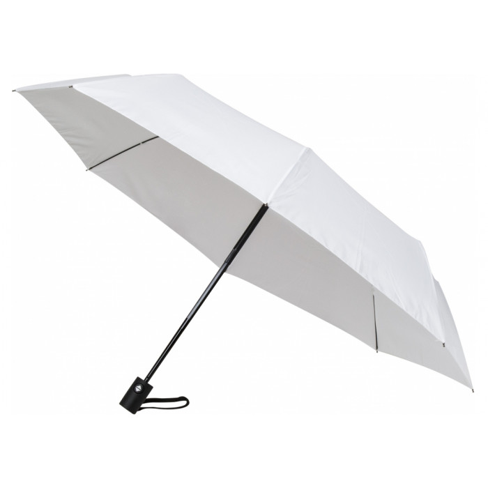 Автоматична складна парасоля. Колір куполу: білий, матеріал куполу: поліестер. Розміри: довжина (у складеному стані) 27,5 см, діаметр куполу 95 см. Зручна та компактна, оптимальне сіввідношення ціна-якість. Металеві стержень та шпиці, кожна парасоля має захисний чохол.
