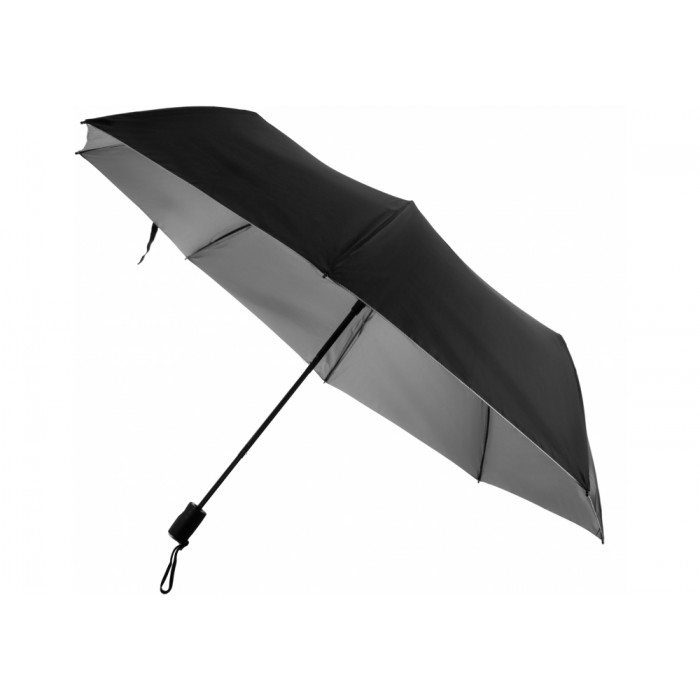 Практична та зручна напівавтоматична парасоля. Колір куполу: чорно/срібний. Кількість спиць: 8. Розміри: довжина (у складеному стані) 39 см, діаметр куполу 117 см. Надміцний матеріал корпусу - понже, металевий каркас. Захисний чохол в комплекті.