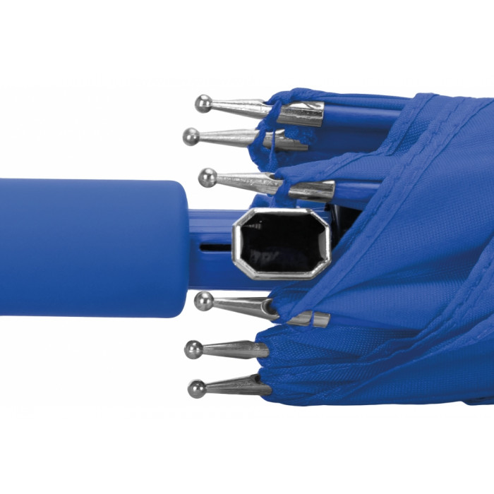 Елегантна парасоля-тростина; колір куполу: синій; ручка, шпиці, та стержень парасолі зроблені в одному кольоровому рішенні з куполом; матеріал шпиць та механізму - файберглас: додає парасолі надійності при експлуатації; діаметр куполу - 103 см; чудово підходиить під нанесення логотипу.