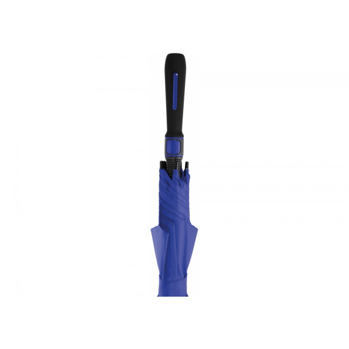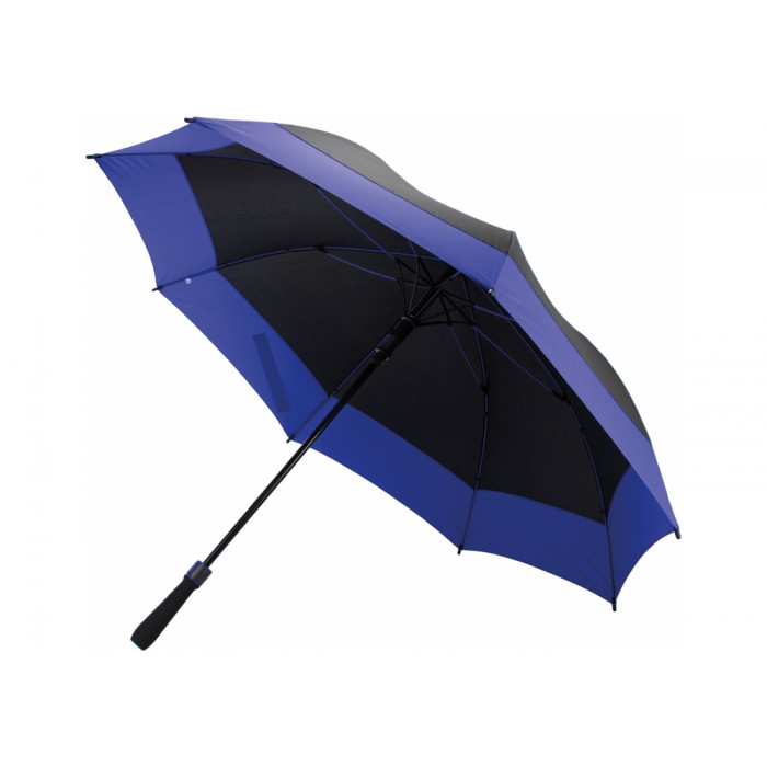 Зручна та надійна парасоля-тростина. Механізм відкриття: напівавтомат. Кількість спиць: 8. Колір куполу: чорно/синій. Розміри: довжина 95 см, діаметр куполу 120 см. Надміцний матеріал куполу - понже, каркас виготовлений з файбергласу.