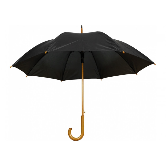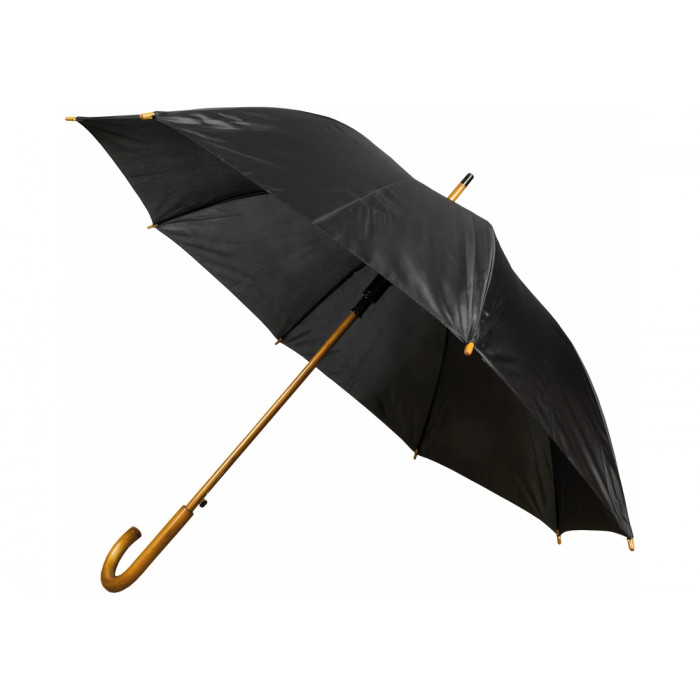 Напівавтоматична парасоля-тростина. Колір куполу: чорний. Розміри: довжина 85 см, діаметр куполу 106 см. Матеріал куполу-поліестер. Стержень, ручка та кінчик парасолі зроблені з деревини, механізм стальний. Дерев'яні деталі вкриті лаком, надійні та приємні на дотик.