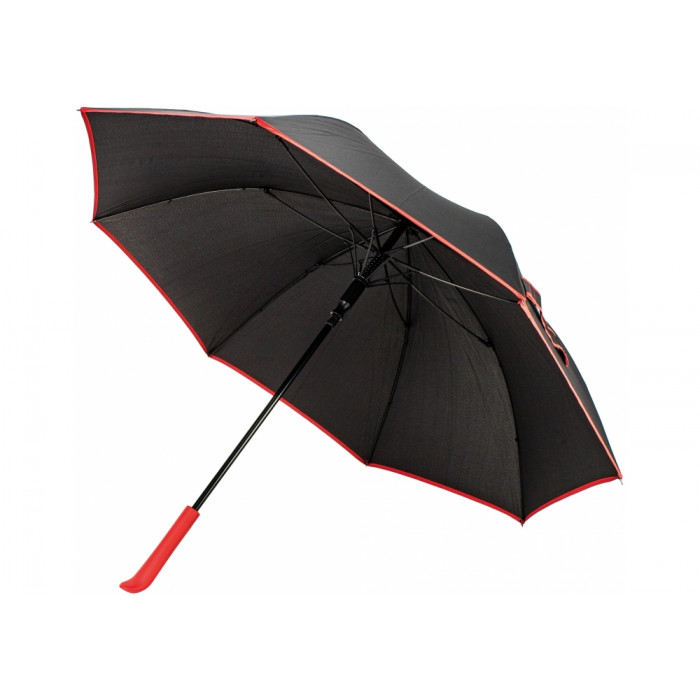 Стильна парасоля-тростина. Колір куполу: чорно/червоний. Розміри: довжина 89 см, діаметр куполу 103 см. Купол з епонжу надійно захищає від вітру та дощу. Шпиці виготовлені з матеріалу файберглас, що надає парасолі гнучкості та вітростійкості. Енергомічна ручка оригінальної форми зручно тримається в руці. В комплекті-зручний чохол.