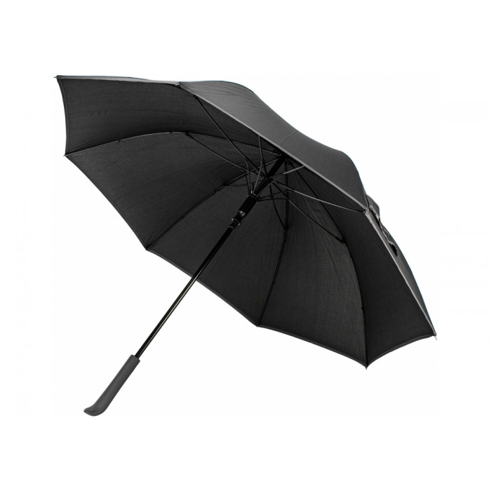 Стильна парасоля-тростина. Розміри: довжина 89 см, діаметр куполу 103 см. Купол з епонжу надійно захищає від вітру та дощу. Шпиці виготовлені з матеріалу файберглас, що надає парасолі гнучкості та вітростійкості. Прогумована енергомічна ручка зручно тримається в руці. В комплекті-зручний чохол.