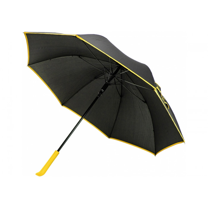 Стильна парасоля-тростина. Колір куполу: чорно/жовтий. Розміри: довжина 89 см, діаметр куполу 103 см. Купол з епонжу надійно захищає від вітру та дощу. Шпиці виготовлені з матеріалу файберглас, що надає парасолі гнучкості та вітростійкості. Енергомічна ручка оригінальної форми зручно тримається в руці. В комплекті-зручний чохол.