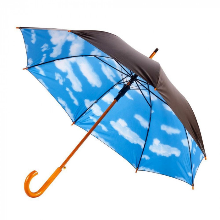 Современный зонт трость полуавтомат, с двойным слоем нейлона. Внутренний купол в виде неба который даже в плохую погоду поднимет вам настроение Диаметр купола: 105 см.