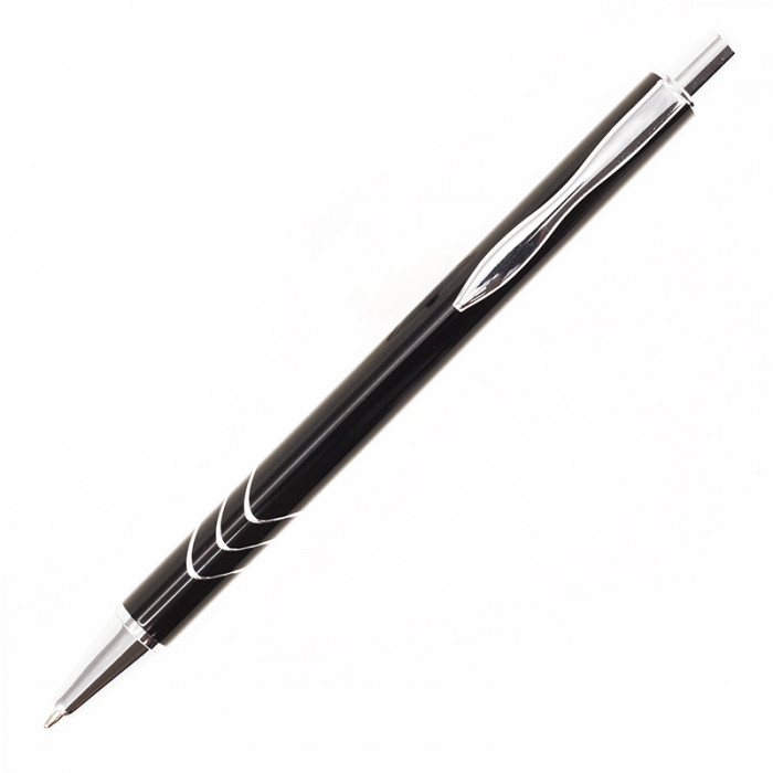 Автоматическая, шариковая ручка Bergamo Vive. Грип ручки имеет три волнообразных сечения, для предотвращения соскальзывания во время письма. Хромированные клип, кнопка и носик. Глянцевое корытие, заменяемый стержень. Кнопочный механизм. Цвет чернил - синий.