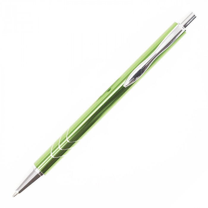 Автоматическая, шариковая ручка Bergamo Vive. Грип ручки имеет три волнообразных сечения, для предотвращения соскальзывания во время письма. Хромированные клип, кнопка и носик. Глянцевое корытие, заменяемый стержень. Кнопочный механизм. Цвет чернил - синий.