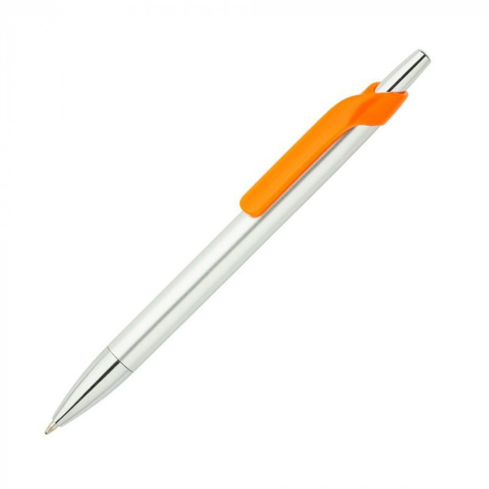 Шариковая ручка из матового пластика цвета «Алюминий» дополнена носиком и кнопкой цвета глянцевое серебро. С ярким цветным пластиковым клипом.