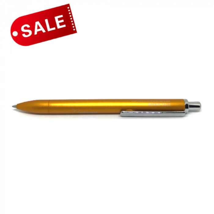 Металлическая шариковая ручка, с хромированной кнопкой и клипом. Стержень синий.