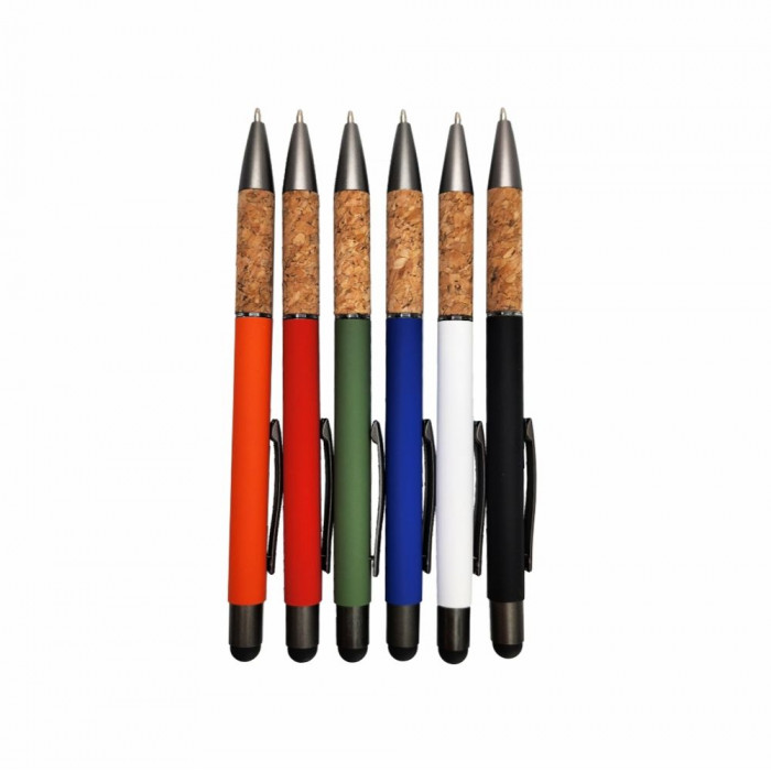 Металева кулькова ручка Amazon – це сучасне сенсорне канцелярське приладдя високої якості з корковою нижньою частиною. Ручка з корком не висковзує з пальців, нею зручно писати.