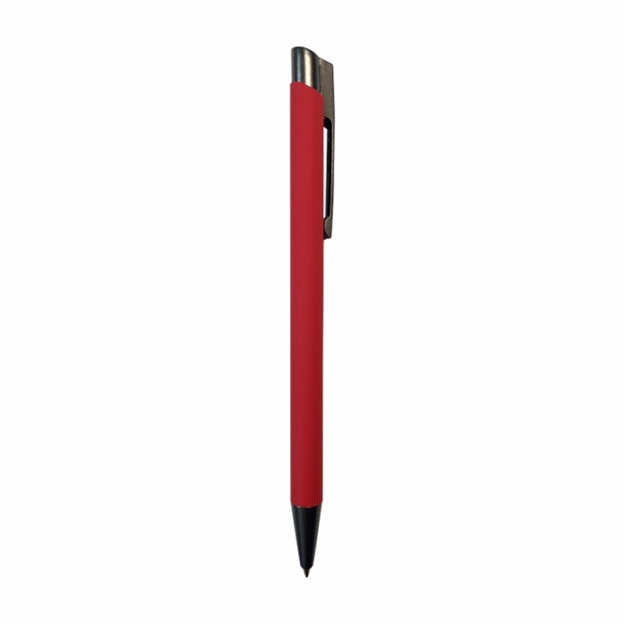 Корпус ручки виготовлений з алюмінію, зверху якісна гумова обробка. Виріб має кнопку та наконечник сірого кольору.