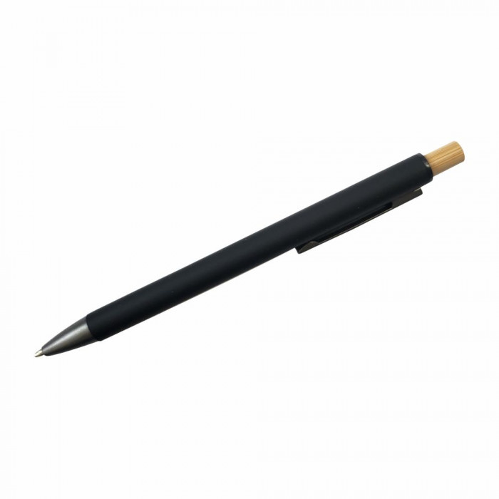 Корпус ручки виготовлений з алюмінію, зверху нанесене кольорове гумове покриття. Виріб має бамбукову кнопку.