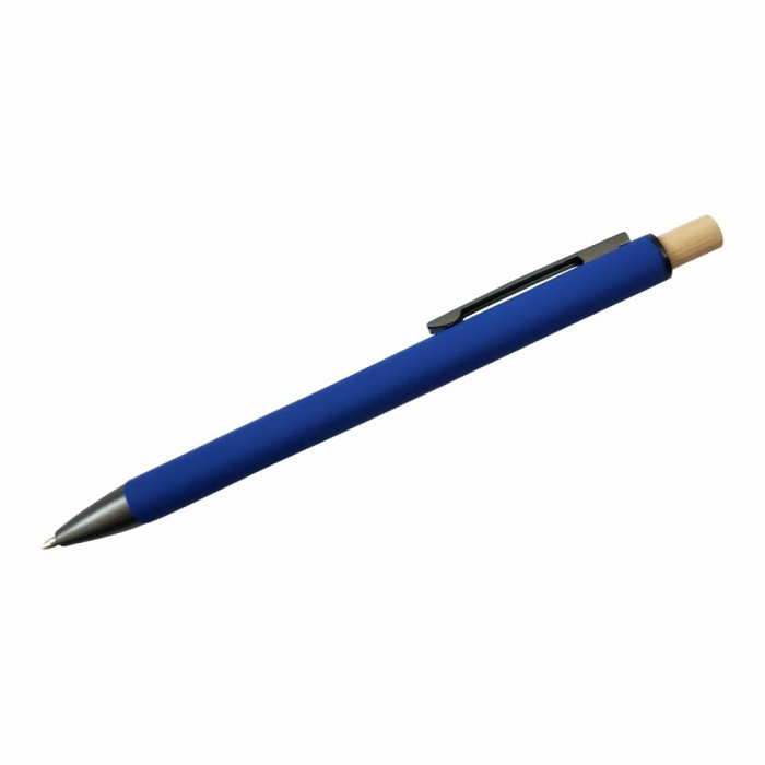 Корпус ручки виготовлений з алюмінію, зверху нанесене кольорове гумове покриття. Виріб має бамбукову кнопку.