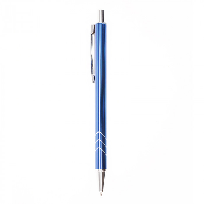 Автоматическая, шариковая ручка Bergamo Vive. Грип ручки имеет три волнообразных сечения, для предотвращения соскальзывания во время письма. Хромированные клип, кнопка и носик. Глянцевое корытие, заменяемый стержень. Кнопочный механизм. Цвет чернил - синий.