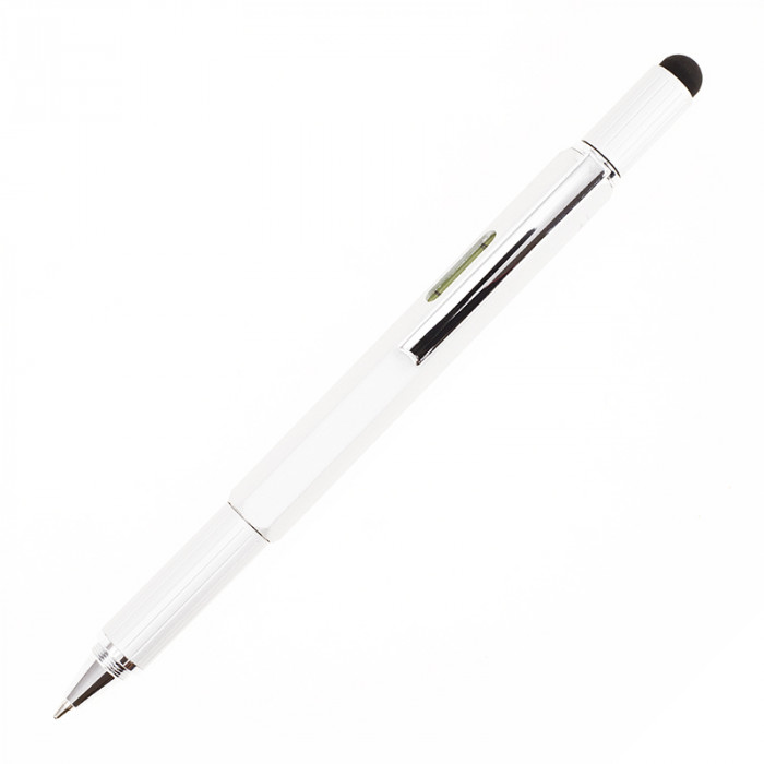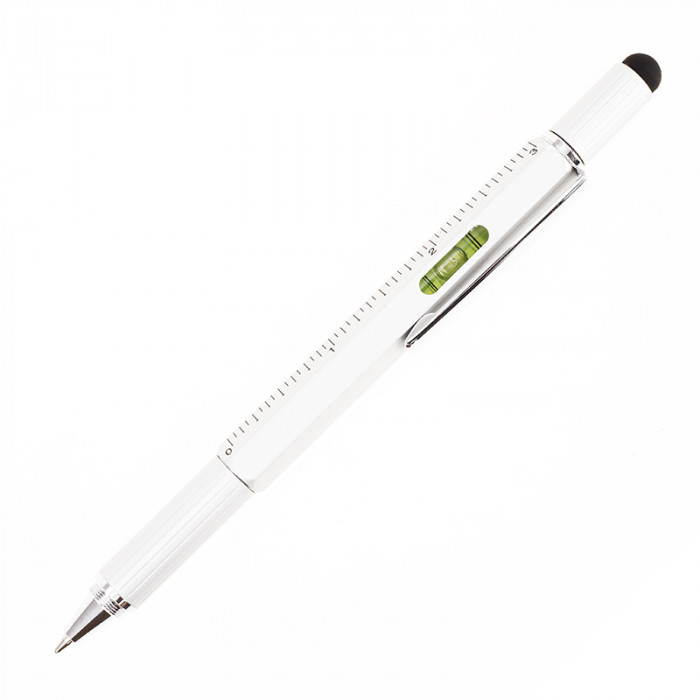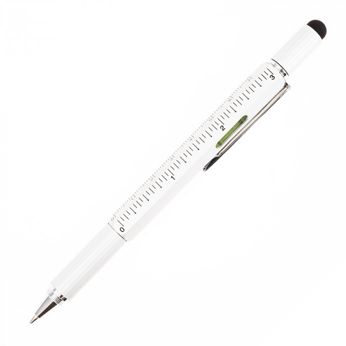 Ручка мультитул, шариковая, Bergamo Builder, 5 в одном: ручка, линейка, уровень, стилус и отвертки (SL0, PH0). Это настоящая ручка трансформер! Колпачок со стилусом откручивается и ручка превращается в полноценный инструмент - шлицевую или крестообразную отвертку. Отвертка фиксируется в надежном, металлическом, магнитном гнезде. Сверхпрочный и устойчивый, шестигранный корпус, оснащен линейкой и уровнем позволяющими произвести измерения длинны и неровности поверхностей. Заменяемый стержень. Поворотный механизм. Цвет чернил - синий.