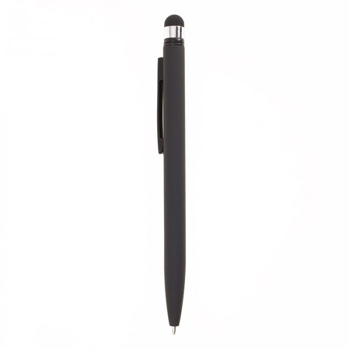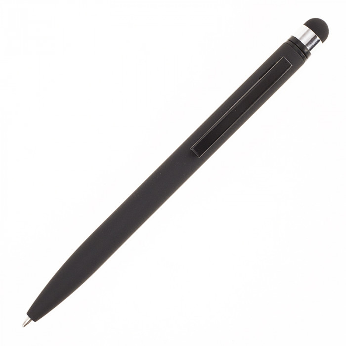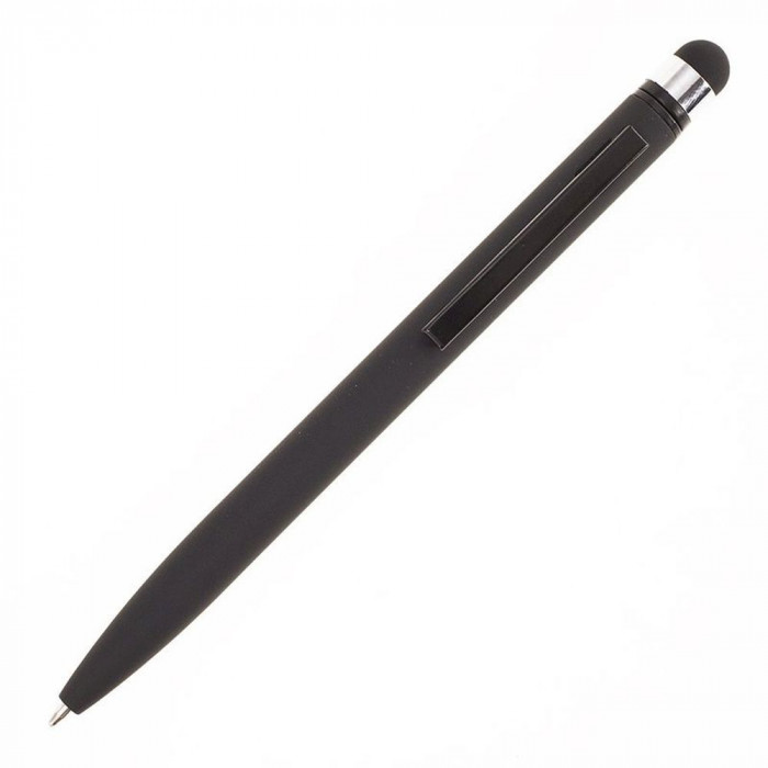 Автоматическая, шариковая ручка-стилус Bergamo Soft c мягким, прорезиненным покрытием корпуса и стилусом для сенсорных дисплеев. Контрастные элементы - черный клип и стилус. Поворотный механизм. Цвет чернил - синий.