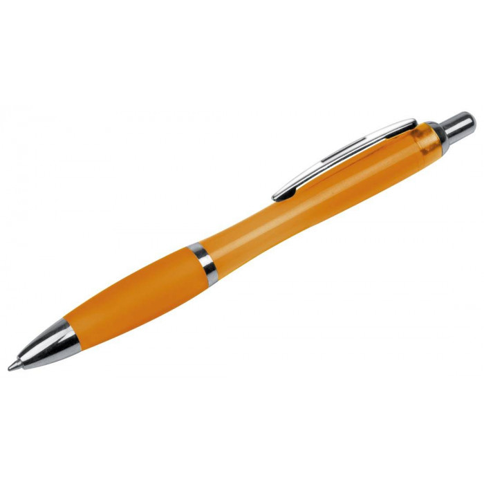 Ручка с синим стержнем, сделана из прозрачного пластика с металлическими элементами. Группа нанесения: T1.