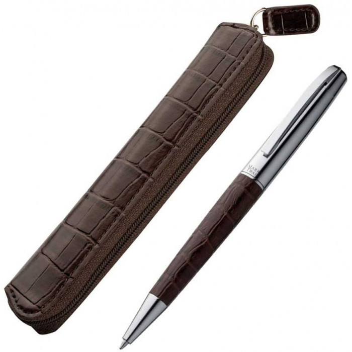 Шариковая ручка "Нэшвилл" из коллекции Mark Twain с поворотным механизмом с синим стержнем и элегантным дизайном под кроко. Очень гармонирует с прилагающимся кожаным чехлом.