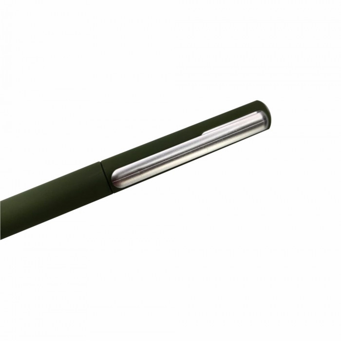 Ручка обладнана пластиковим затискачем сріблястого кольору. За допомогою затискача вона кріпиться в кишені рюкзака чи сумки.
