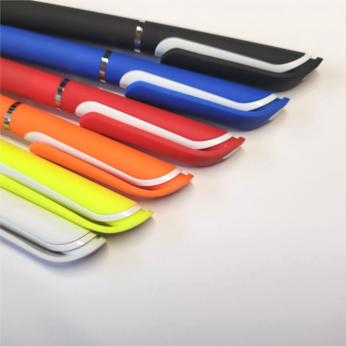 Корпус ручки виготовлений з пластику. Зверху корпус і затискач погумовані. Посередині – металеве хромоване кільце.