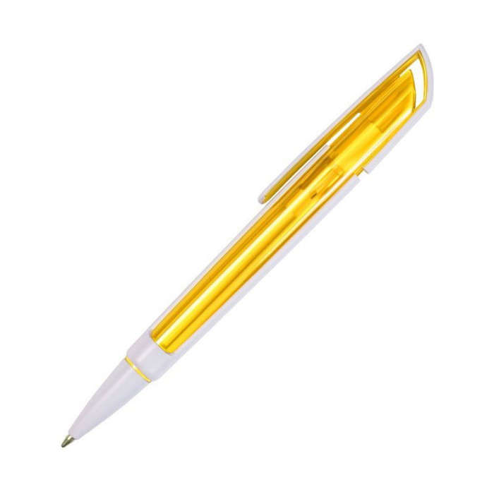 Ручка выглядит динамично и целеустремленно! Шариковая ручка в комбинированном пластиковом корпусе выполненном из глянцевого полупрозрачного цветного пластика, обрамленного белым матовым пластиком. Очень удобна для письма за счет эргономического упора.