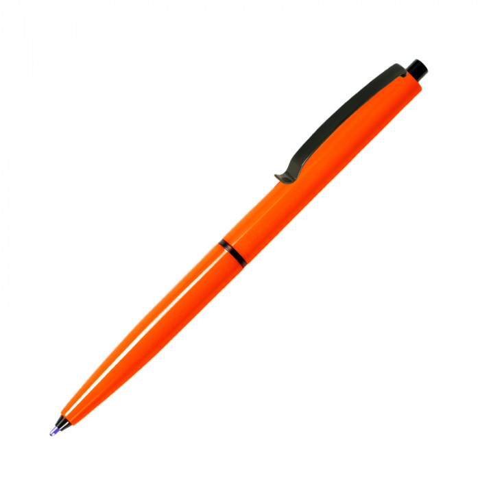 Шариковая авторучка, корпус из глянцевого пластика, металлический клип и элементы, нажимное исполнение кончика ручки.