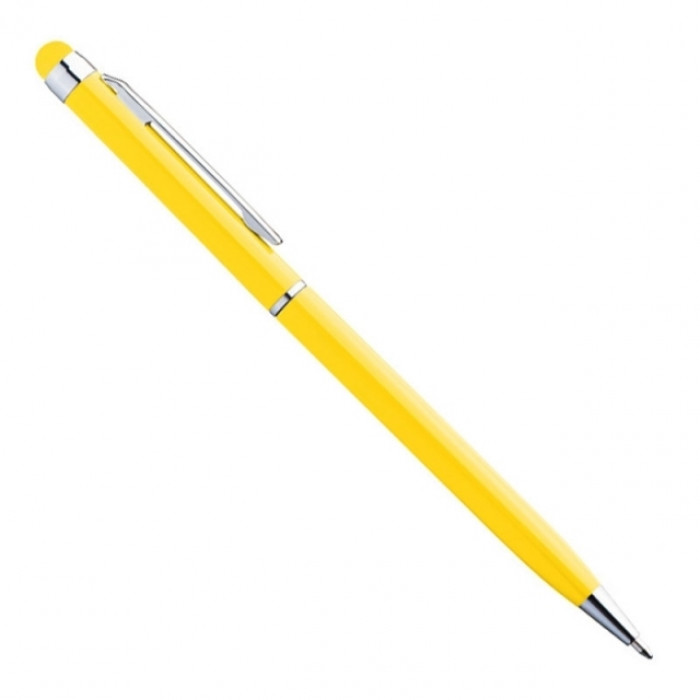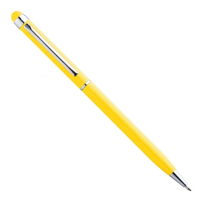 Шариковая авторучка-стилус, металлический корпус покрытый цветным глянцевым лаком, поворотный механизм. На кончике ручки расположен цветной стилус для сенсорных дисплеев, гармонирующий с цветом корпуса ручки. Серебристые элементы ручки будут гармонировать с серебристым цветом гравировки на корпусе ручки.