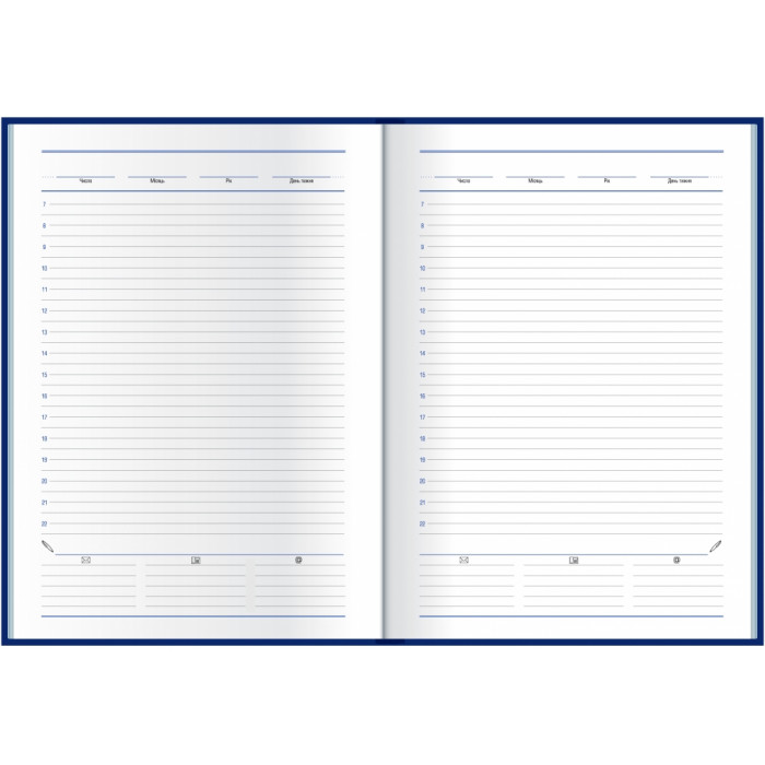 Ежедневник недатированный Economix Формат: А5 Количество страниц – 320. Информационный блок – 9 страниц. Телефонная книга. Цвет бумаги блока – белый. Цвета печати – синий и черный. Закладка – шелковая лента синего цвета.