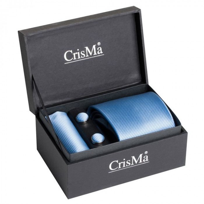 Шёлковый галстук, платочек и идеально гармонирующие запанки на манжеты. Комплект упакован в элегантной упаковке.