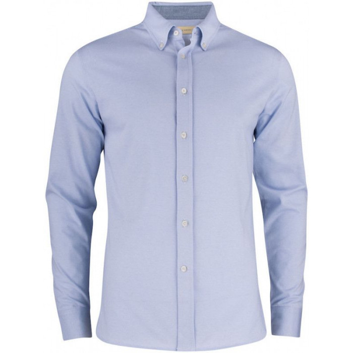 Сорочка з джерсі в стилі оксфорд. Ткані деталі всередині коміра і бічних розрізів. Комір на ґудзиках, регульовані манжети і перламутрові ґудзики. Склад: 60% бавовна, 40% поліестер. Щільність: 165 г/м.кв.