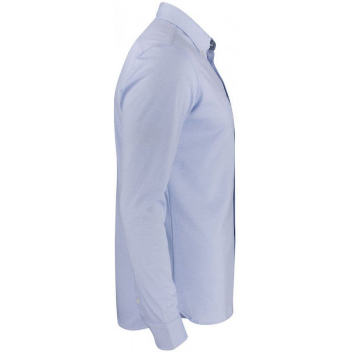 Сорочка з джерсі в стилі оксфорд. Ткані деталі всередині коміра і бічних розрізів. Комір на ґудзиках, регульовані манжети і перламутрові ґудзики. Склад: 60% бавовна, 40% поліестер. Щільність: 165 г/м.кв.