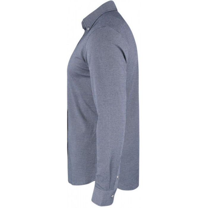 Сорочка з джерсі в стилі оксфорд. Ткані деталі всередині коміра і бічних розрізів. Комір на ґудзиках, регульовані манжети і перламутрові ґудзики. Склад: 60% бавовна, 40% поліестер. Щільність: 165 г/м.кв.