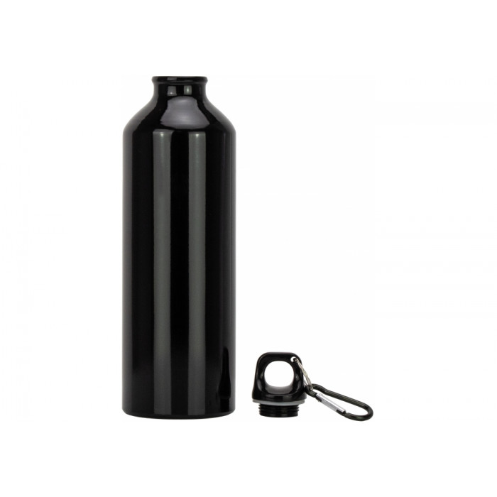 Алюмінієва глянцева пляшка; об'єм 750 мл; зручний аксесуар для спорту та відпочинку; пляшка має пластикову кришку з карабіном; кришка має різьбу, що робить з'єднання з пляшкою герметичним; розміри: висота до кришки 215 мм, діаметр - 72 мм.