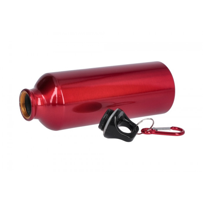 Алюмінієва пляшка в кольоровому корпусі. Зручний аксесуар для спорту та відпочинку. Пляшка оснащена пластиковою пробкою з карабіном. Пробка має різьбу, що робить з'єднання горлечка з пробкою герметичним. Пляшка має високу міцність при маленькій вазі.