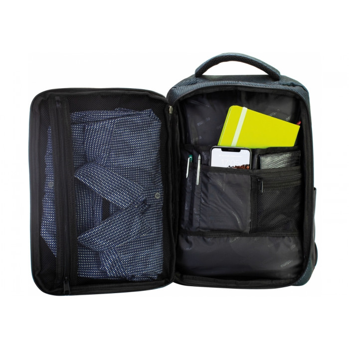 Матеріал: поліестер з PU покриттям зовні на фасаді для абсолютного водовідштовхування; анатомічна спинка з м'якими вставками; прихована кишеня на спинці; Laptop-кишеня; 2 бічні кишені; 1 відділення на блискавці; органайзер; металева фурнітура, подвійні застібки; міцна ручка; спинка ущільнена PE вставкою; ергономічні S-образні регульовані лямки; ремінь на лямках для додаткової фіксації. Гарантія на виробничий брак 60 днів.
